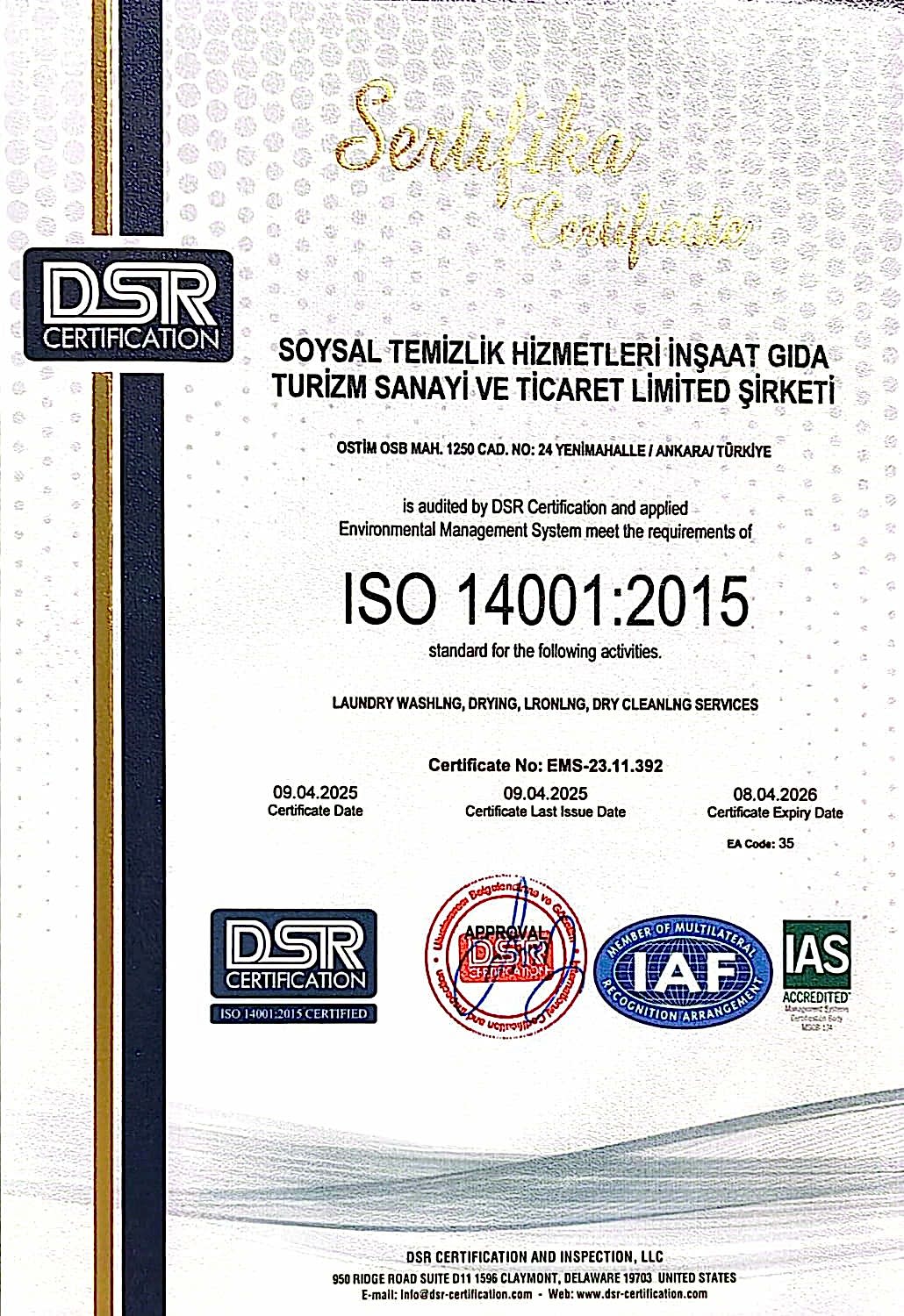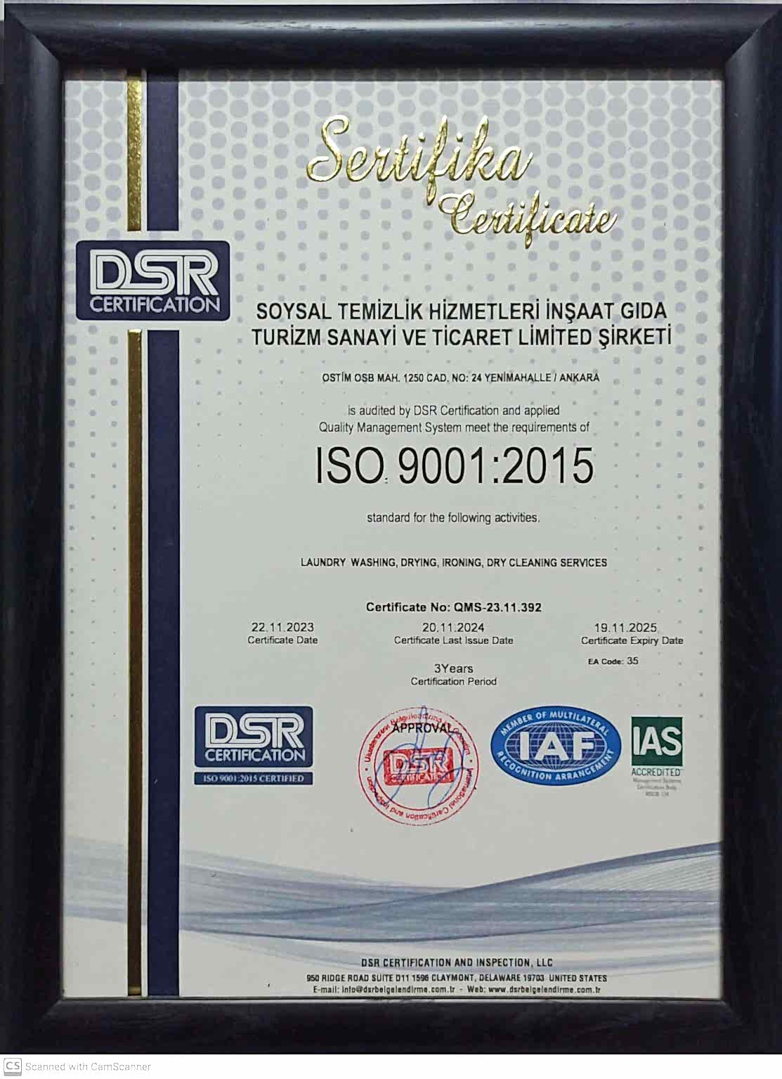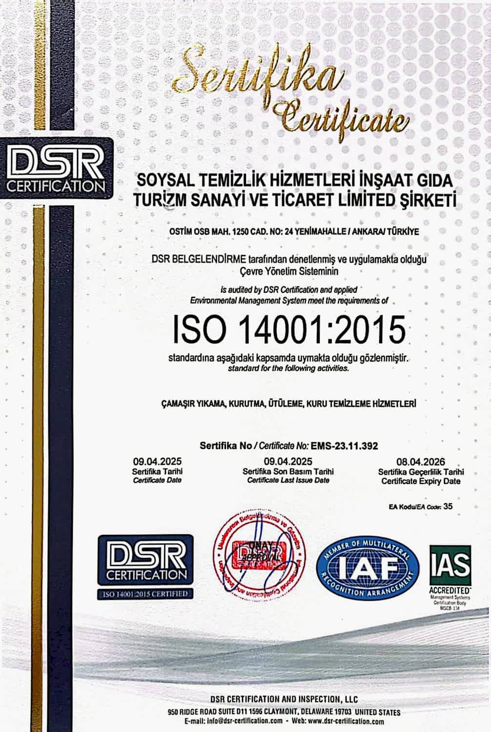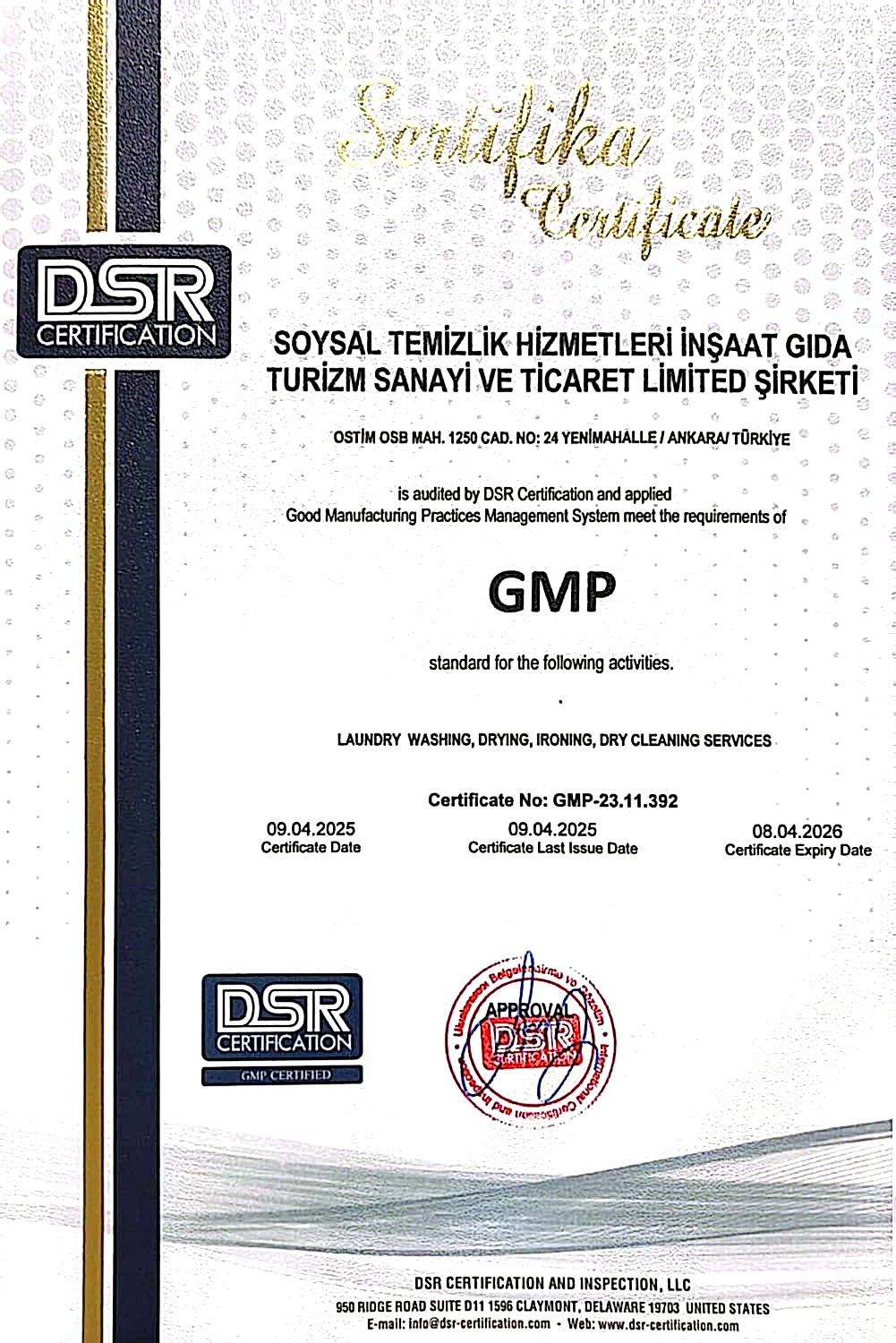 Müşteri memnuniyeti felsefesinden yola çıkarak, çamaşır yıkama sektörünün lider konumuna ulaşmak ve Ankara ile tüm Türkiye’nin saygın firmaları arasında yer almaktadır. Faaliyet gösterdiği tüm sektörlerde, çalışanları ve müşteri memnuniyetini en üst düzeye çıkarmak için iyi standartlarda hizmet sunmak, rekabetçi büyüme politikası ile şirketi, sektörü ve ülke ekonomisi için öncülerden biri olmak, çağımız koşullarına uyumlu bir şekilde ileriye doğru yol alırken toplumun kalkınmasına katkıda bulunacak kuruluşlar arasında yerini almaktır.
